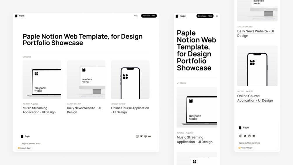 Start your own portfolio website! Nothing to worry about the code, HTML, and Javascript. Because you can get your first portfolio website directly on your Notion page. But it may feel too plain, so customize it on Super.